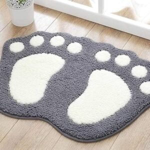 Cute Footprint Microfiber Bath Mat – Non-Slip, Water Absorbent, Quick Dry Bathroom Rug & Doormat – Gray