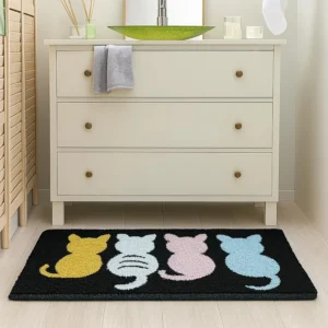 Cat Super Soft Bath Mat (40×60 cm) – 2000 GSM Thick Microfiber, Super Absorbent, Anti-Skid Door & Floor Mat for Home, Bathroom, Bedroom & Kitchen (Multicolor, Pack of 1)