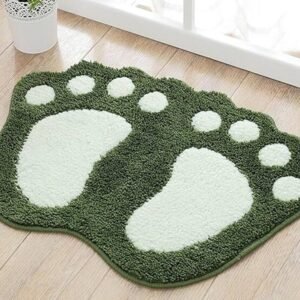 Cute Footprint Microfiber Bath Mat – Non-Slip, Water Absorbent, Quick Dry Bathroom Rug & Doormat – Green