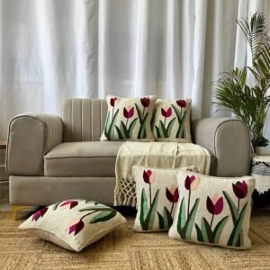 Cushion with Cotton Embroidered Cushion Cover Pack of 5 for Sofa, Couch, Living Room and Bedroom 40cm x 40 cm _ Traditional Hand Embroidered Throw Pillow Cover 16 x 16 inch _