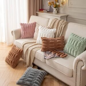 Cushion Covers, Faux Fur, Plush, Soft, Fluffy, Decorative, Modern Decoration for Living Room, Sofa, Car, Bedroom, Decor, Home, Office 16 x 16 Inches (Blue, 40 x 40 cm)