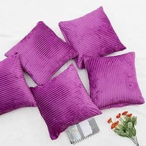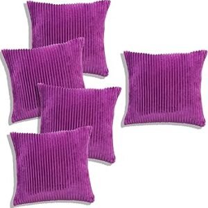 Cushion Cover Set of 5, Decorative Sofa Living Room Home Square Cushion Covers 16 Inch x 16 Inch, Aesthetic Corduroy Striped Double Sided (Dark Pink,Pack of 5)