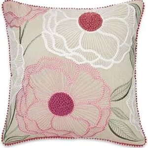 Decorative Embroidered Cushion Cover _ Knitted Chambray Front Throw Pillow Cushion Cover for Sofa Living Room _ 16Inch X 16Inch _ Outline Floral, 260 TC