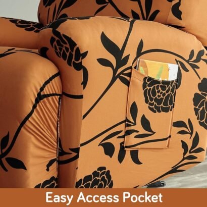 140 GSM Stretchable Recliner Sofa Cover ? 3 Seater (Copper Brown Floral)