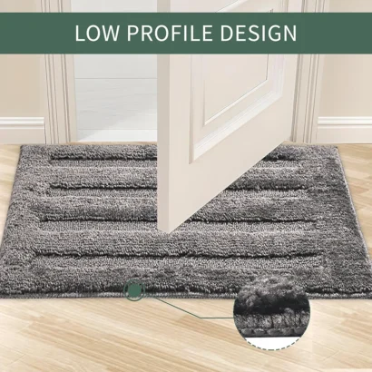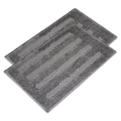 Set of 2 grey microfiber bath mats. Super absorbent, quick-drying, and anti-slip backing keeps floors dry, safe, and comfortable for your feet.
