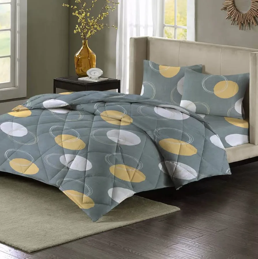 Stay warm and cosy with this 220 GSM reversible AC comforter, designed for single beds. Crafted with a soft glace cotton outer layer and microfiber filling, this comforter offers lightweight warmth and long-lasting comfort. Its reversible design in elegant grey and orange adds a modern touch while giving you two looks in one. Perfect for winter and AC use, it is colour fade-resistant, durable, and easy to maintain. Sized at 240×152 cm (4×7 ft), it’s ideal for single beds, making it a versatile addition to your bedroom essentials.