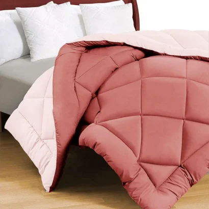 Add a touch of comfort and style to your bedroom with this 220 GSM solid plain reversible AC comforter. Crafted with a 3-layered design, it features premium hollow siliconized filling and a 100% microfiber shell for a soft, luxurious feel. Lightweight yet cosy, this comforter is perfect for mild winters and air-conditioned rooms, making it suitable for year-round use. The candy pink reversible design enhances your décor while providing lasting warmth and breathability. Machine-stitched to keep the filling evenly spread, it ensures durability, comfort, and a restful sleeping experience.