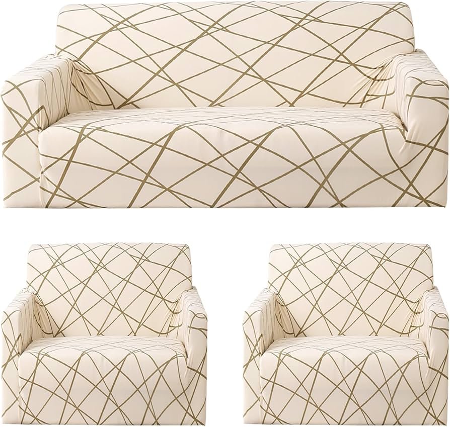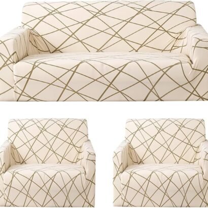 Be the first to review “3 Piece Sofa Covers Couch Slipcover Stretch Elastic Sofa Couch Furniture Protector 1 Three Seater 2 One Seater Sofa Cover (3+1+1 Seater, Beige Line)”