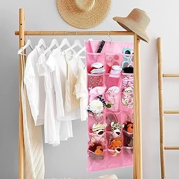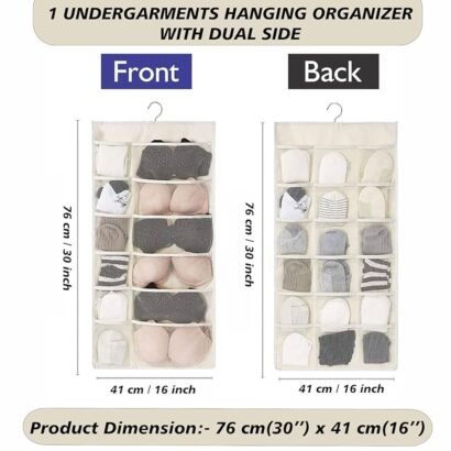 30-Pocket Double-Sided Hanging Closet Organizer | Underwear, Bra & Socks Storage | Wall-Mount Wardrobe Organizer | Rose (Pink)