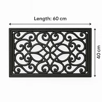Welcome guests with style and safety using this 40×60 cm heavy-duty rubber doormat. Crafted from premium-grade recycled rubber, it is built to last with crack resistance and superior durability. The textured non-slip backing ensures stability, keeping the mat safely in place for kids, elderly, and pets. Its low-pile surface traps dirt, mud, and moisture while remaining easy to clean. Designed with an elegant rectangular pattern, this doormat enhances the look of any entryway. Ideal for indoor and outdoor use, it fits perfectly at main doors, patios, balconies, porches, gardens, garages, or office entrances.