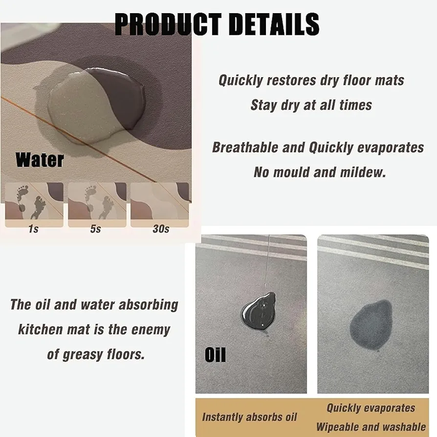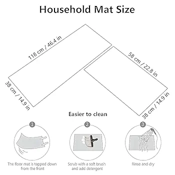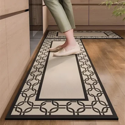 Enhance comfort and safety in your home or workplace with these anti-slip vintage pattern floor mats. Available in two sizes — 120×40 cm and 60×40 cm — they feature memory foam construction that provides superior foot pressure relief while standing for long periods. The water-resistant surface and non-slip backing ensure safety in high-traffic areas such as kitchens, offices, sinks, or laundry rooms. Easy to maintain, these tufted rubber mats can be quickly cleaned with a vacuum and detergent, then rinsed with water to keep them fresh. Stylish, functional, and ergonomic, these premium mats are a must-have for any space requiring comfort and durability.