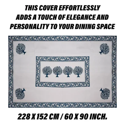 Blue Tree Floral Cotton Dining Table Cover – 6-Seater, 60×90 Inch, Multicolor