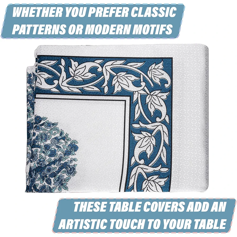 Multicolor Blue Tree floral cotton table cover for 6-seater tables. Durable, elegant, and perfect for enhancing any dining space while protecting your table.