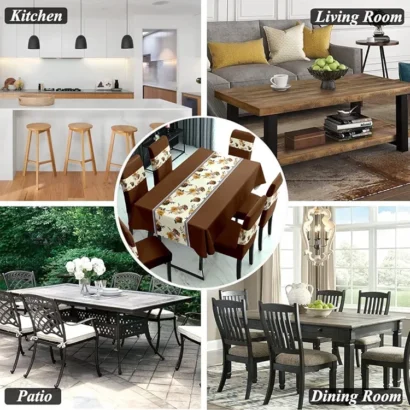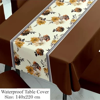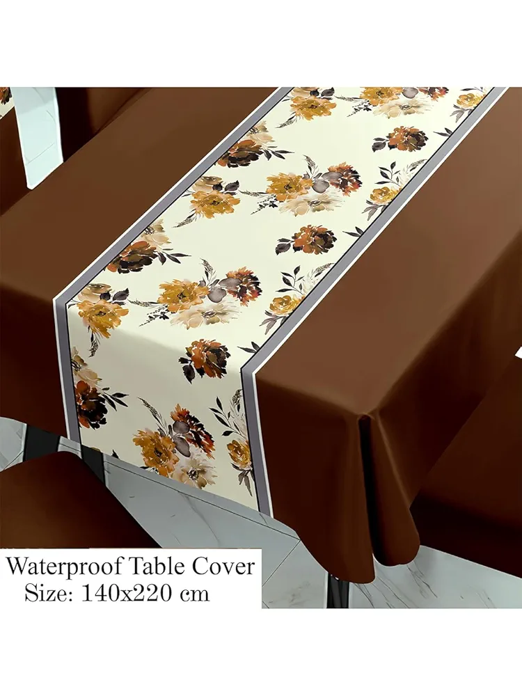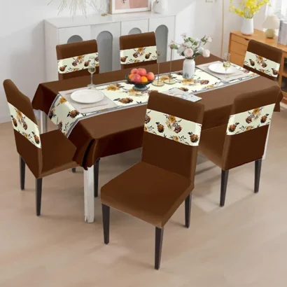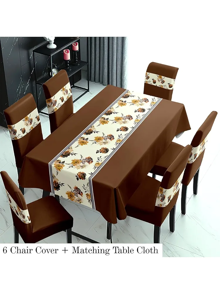 Keep your dining set pristine with this brown PVC waterproof dining table cover and 6 chair covers. The durable PVC table cover protects against spills, stains, dust, and oil, while the stretchable polyester spandex chair covers ensure a snug fit for most standard dining chairs. Easy to clean and maintain, this set provides complete protection for your table and chairs, combining practicality with a neat, elegant look for everyday use or special occasions.