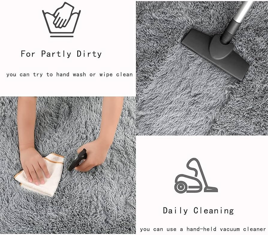【Easy To Care】: Our fluffy rug are very easy to clean, wash or wipe thoroughly with cold water in the mildest cycles, lay rug out or hang to dry naturally without direct heat or sun, choose a site that’s well ventilated for air drying.