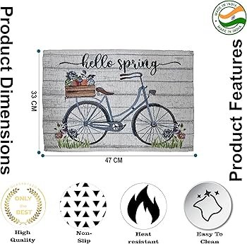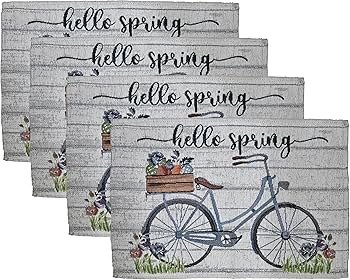 Be the first to review “Hello Spring Bicycle Eco-Friendly Cotton Dining Table mats – Reusable, Machine Washable, Everyday Use Blue & White Rectangular Placemats, Set of 4 (33×47 cm)”
