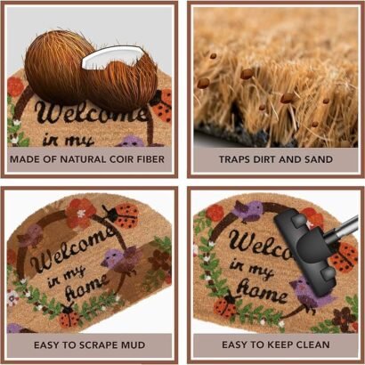 - NATURAL & ECO-FRIENDLY : Coir door mat is the most durable doormat, made of 100% pure coconut coir. Coconut coir is one of the strongest natural fibers in the world. This Coir door mats for Entrance is made of eco-friendly thick coir (fine tufted coconut fiber), no smelly orders, free of toxic chemicals. Safe for kids and families.