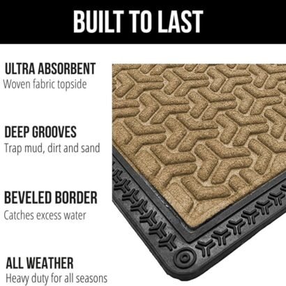 CAPTURES DIRT AND MOISTURE: The sturdy woven topside and deep grooves effectively capture dirt, mud, and moisture; the Ishro Home door mat is designed to prevent unwanted debris from being tracked into your home.