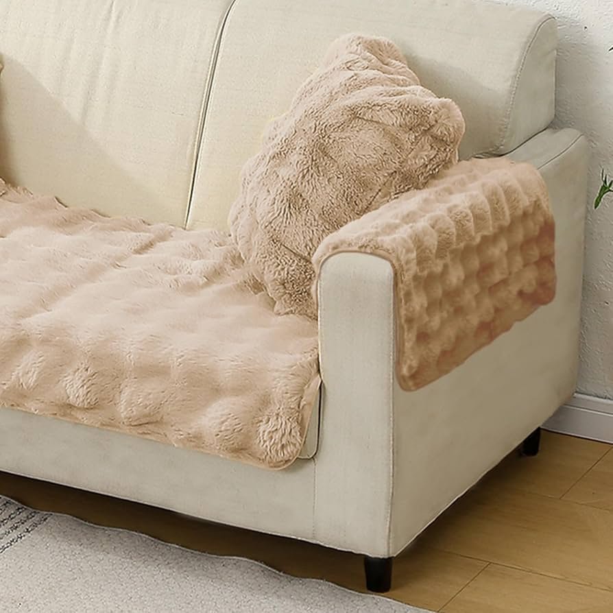 Protect and style your 3-seater sofa with this luxurious faux rabbit fur mat. Its 90 cm depth ensures a snug fit, while extra length can be neatly tucked to the sides. Soft, elegant, and anti-slip, this mat adds comfort and charm to your living space. Easy to install, remove, and wash, it?s perfect for everyday use.