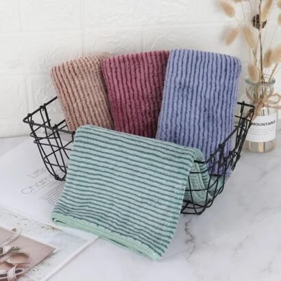 - Specifications: Material: Microfiber, Towel Set: 2, Knitting: Coral Fleece, Style: Lines Size: 40 X 60 CM, WASHING: Machine Wash Cold Separately, Gently Cycle Only, No Bleach Each towel measures 40 x 60 cm, Super Soft Microfiber Hand Towels, Gym & Workout Towels Set.