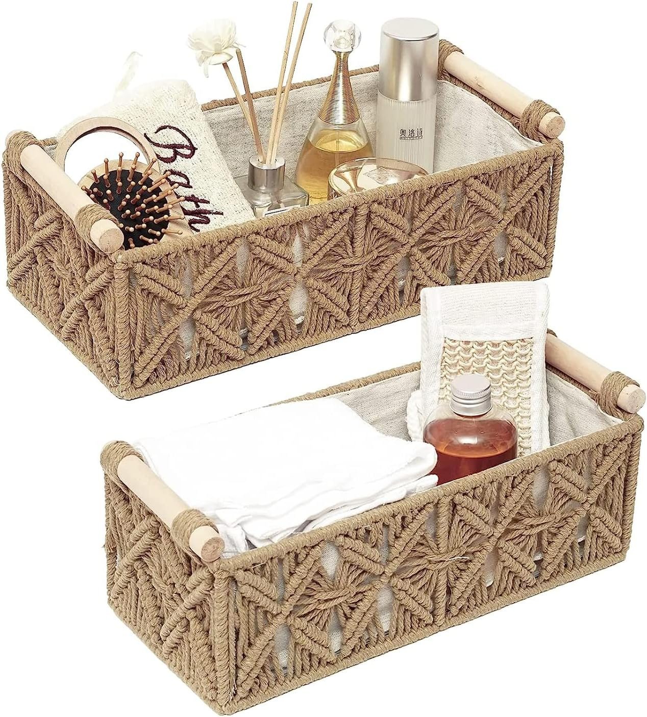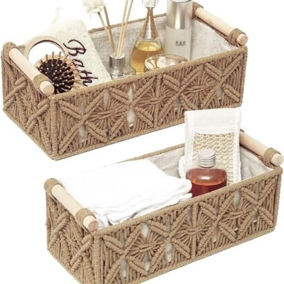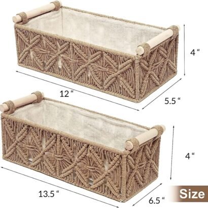 ● Multi-purpose Storage Basket: You can use this macrame storage shelf basket in your bathroom, living room, guest room, kitchen, bedroom, office, and etc. Store tissue/toilet papers, cosmetics, bath essentials, documents, mails, and etc.