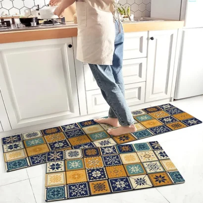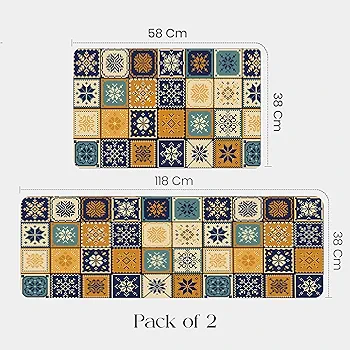 Enhance comfort and safety in your kitchen or workspace with this set of 2 non-slip rubber floor mats. Crafted from high-quality, durable rubber, these mats feature a cushioned, soft-touch surface that provides lasting comfort underfoot while withstanding daily wear. The set includes two mats (38?118?cm and 38?58?cm), perfectly sized for L-shaped kitchens or versatile placement in offices, sinks, or laundry rooms. Water absorbent, easy to clean, and designed for long-lasting resilience, these mats combine functionality, style, and comfort for any space.
