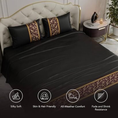 Be the first to review “Solid Bedsheets for Double Size Bed, 300 Threadcount Satin Bedsheet Set, Premium Bedding Set with Pillow Cover, Versailles Vista Grandeur Bedspread, Black, Upto 350 Tc”