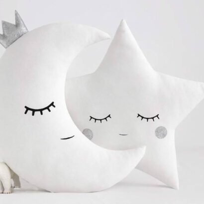 Soft, safe, and stylish, this Silver Moon & Star Cushion Combo is a must-have for every nursery.