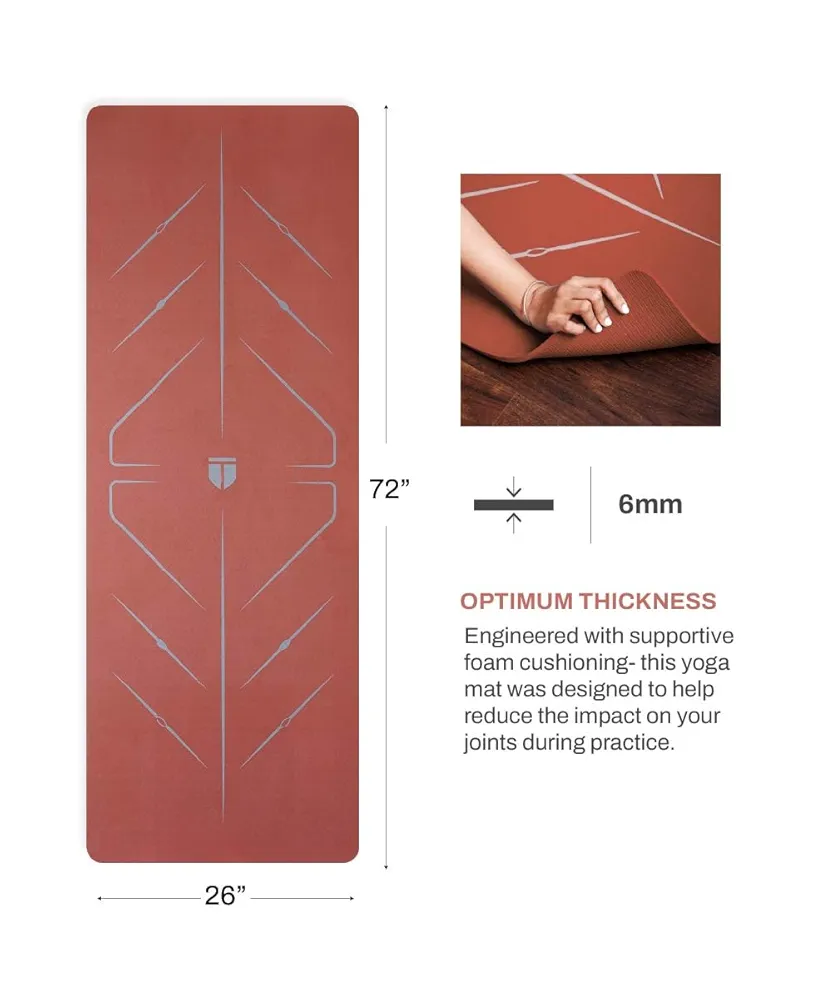 Practice yoga with comfort and confidence using this 6mm Ultra-Cushioned TPE Yoga Mat (Brick Grey). Designed with posture reference alignment lines, it helps maintain correct form and body positioning during practice. The high-density TPE construction offers supportive cushioning to reduce strain on knees, wrists, and joints, making it beginner-friendly and joint-safe. Its non-slip textured surface provides reliable grip, ensuring stability during sweaty flows, quick transitions, and long holds. Antimicrobial properties keep the mat fresh, while its lightweight design and included carry bag make it easy to transport anywhere ? studio, gym, or outdoors.